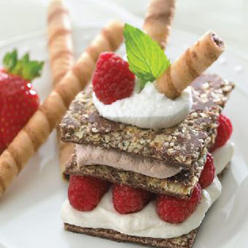 Let’s start with one of our more sophisticated recipes, Pirouline Napoleon. It calls for 12 ingredients and will take just under two hours to complete. After layering three cookie squares, you’ll top it off with a raspberry and a Pirouline. Sounds fancy, looks elegant, and tastes even better!