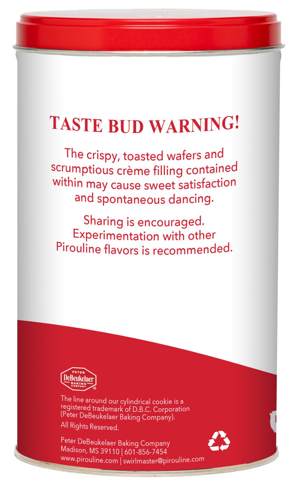 - The line around the cylindrical cookies is a registered trademark of D.B.C Corporation.